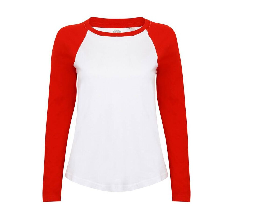 Tämä on SF Women -baseball-t-paita, joka on valmistettu 100 % puuvillatrikoosta. Se on erittäin mukava käyttää ja sillä on erinomainen kestävyys. Siinä on tiukka istuvuus sivusaumoilla. Saatavilla useissa eri kooissa.