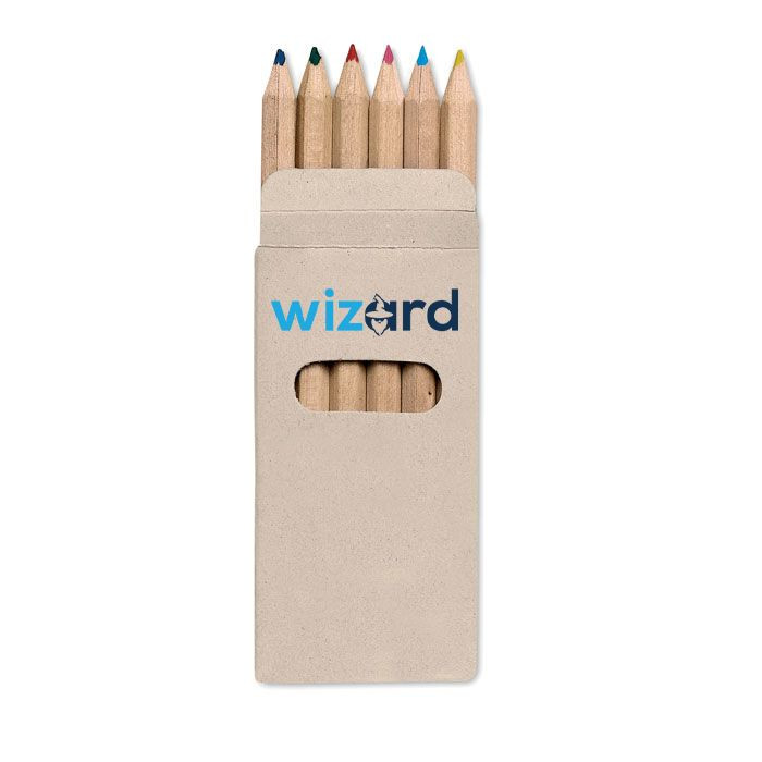 6 värikynää pahvilaatikossa.