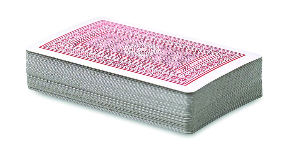 Klassiset pelikortit muovikotelossa, sisältää 54 korttia.
