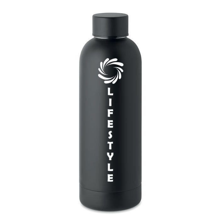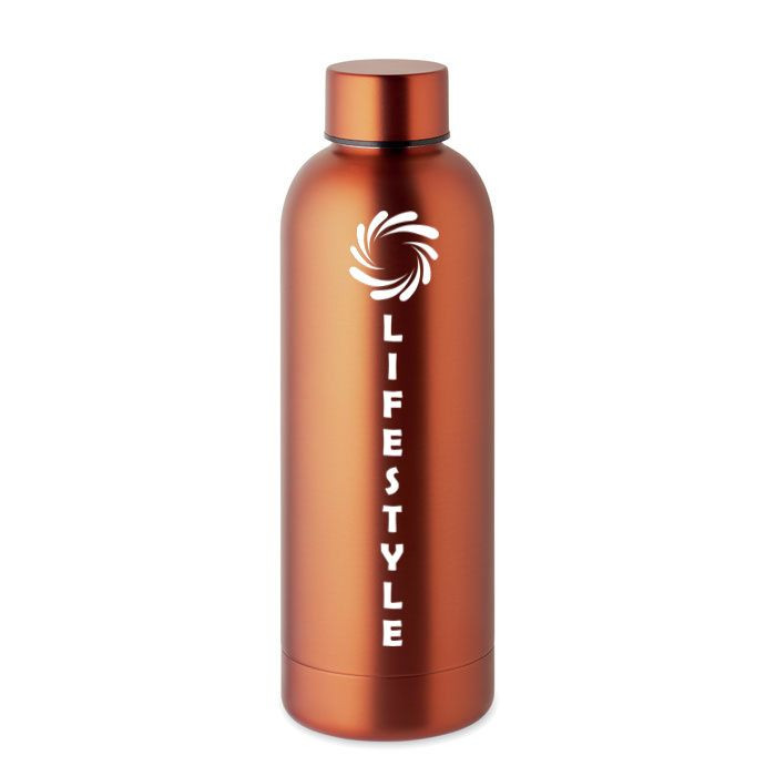 Kaksiseinäinen eristävä termospullo joka on valmistettu kierrätetystä, ruostumattomasta teräksestä (90% kierrätettyä ruostumatonta terästä ja 10% ruostumatonta terästä).