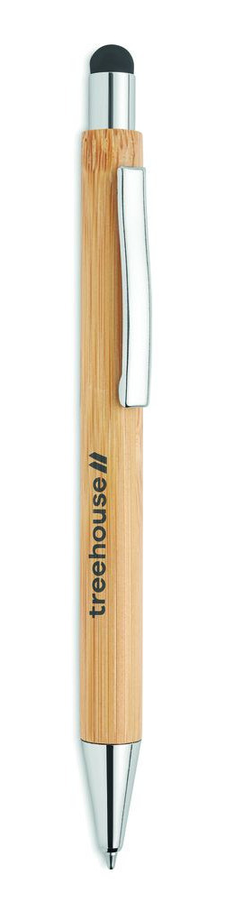Kuulakärkikynä sinisellä musteella bamburungolla ja kosketusnäyttöpäällä.