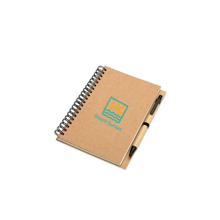 Sisältää 120 sivua kierrätyspaperia (70 arkkia) ja biohajoavan kierrätetyn kuulakärkikynän sinisellä musteella.
