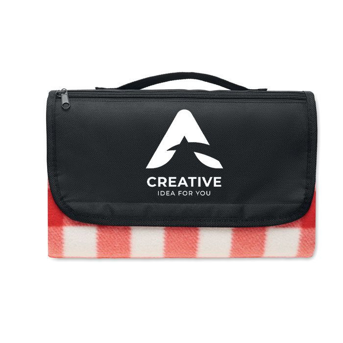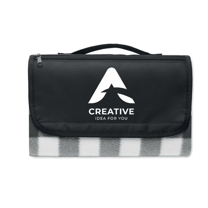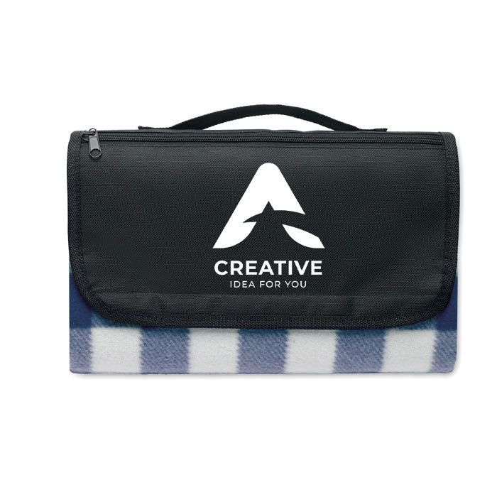 Taitettava RPET 150 gr/m² polarfleece piknik-peitto, jonka kääntöpuoli on vedenkestäväksi pinnoitettua PEVA.