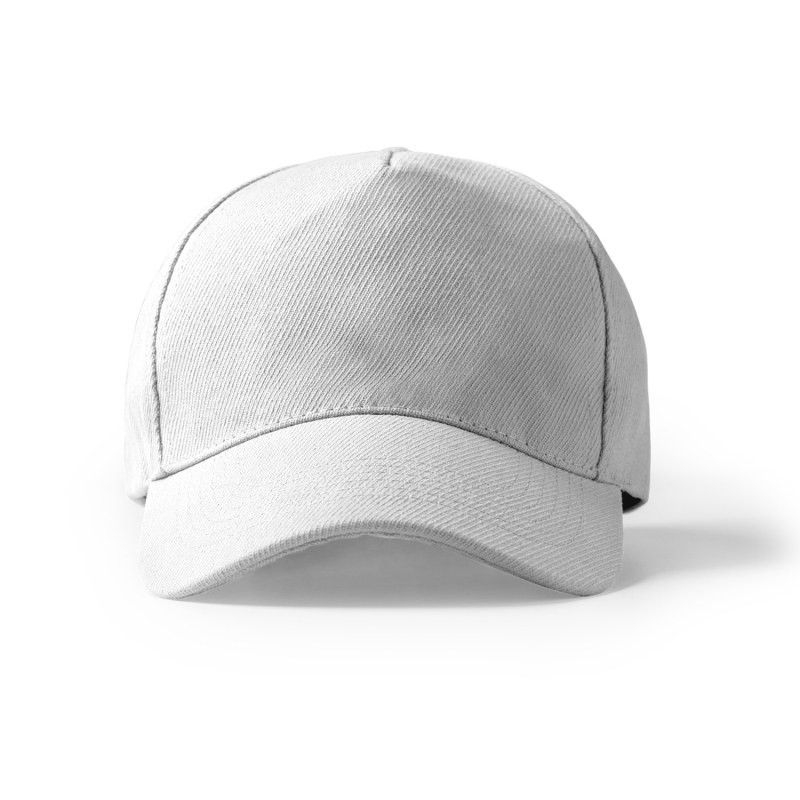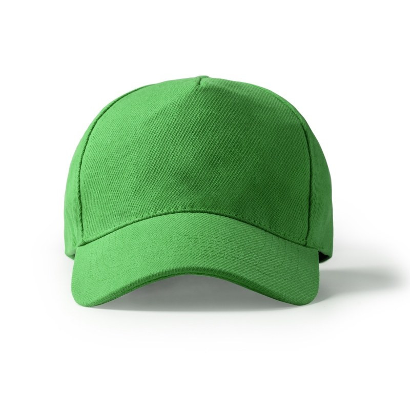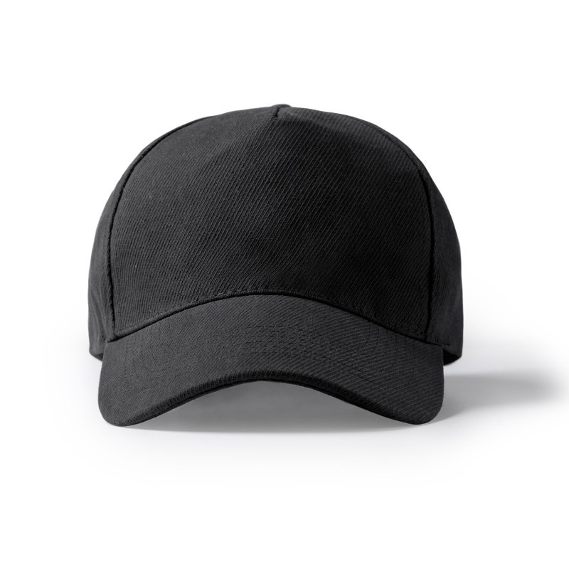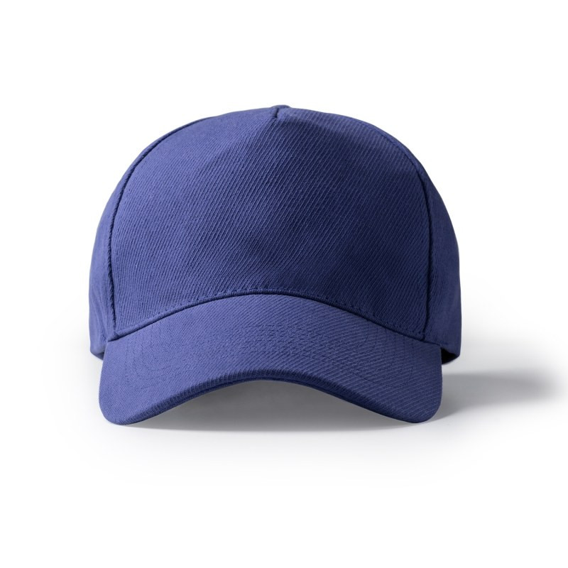 5-panel cap, 100% cotton, with adjustable buckle closure and embroidered eyelets.