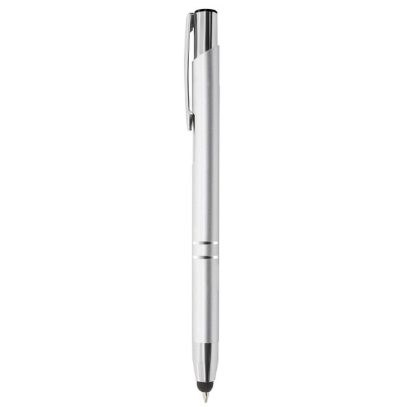 Ball pen with push-up mechanism in cheerful colors. Shiny aluminium finish, with jumbo cartridge and blue ink.