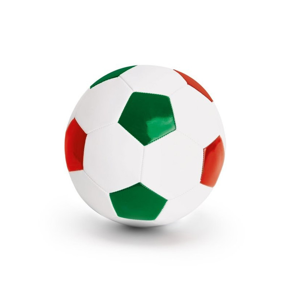 Retro design ball in soft PU leather and FIFA 5 size. Bicolor design with white hexagonal panels and pentagonal panels in varied colors.