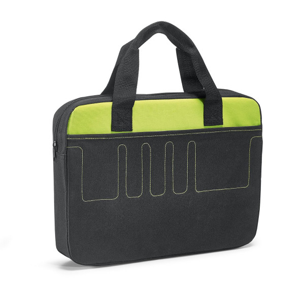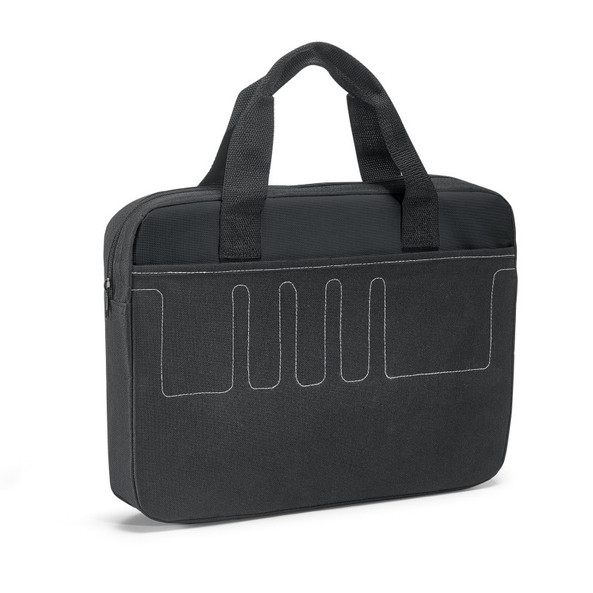 Conference bag with main compartment with zipper closure. Bicolour design with decorative stitching. Inside lining. Reinforced handles.