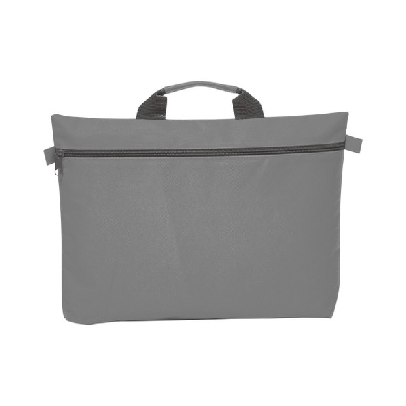 Conference bag with carry handle, zipper closure and pen loops on the outside