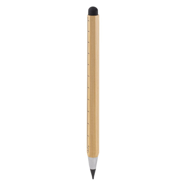 Multifunctional perpetual pencil, made of bamboo, hexagonal shape. Ruler function in cm and inches