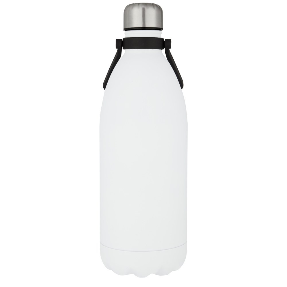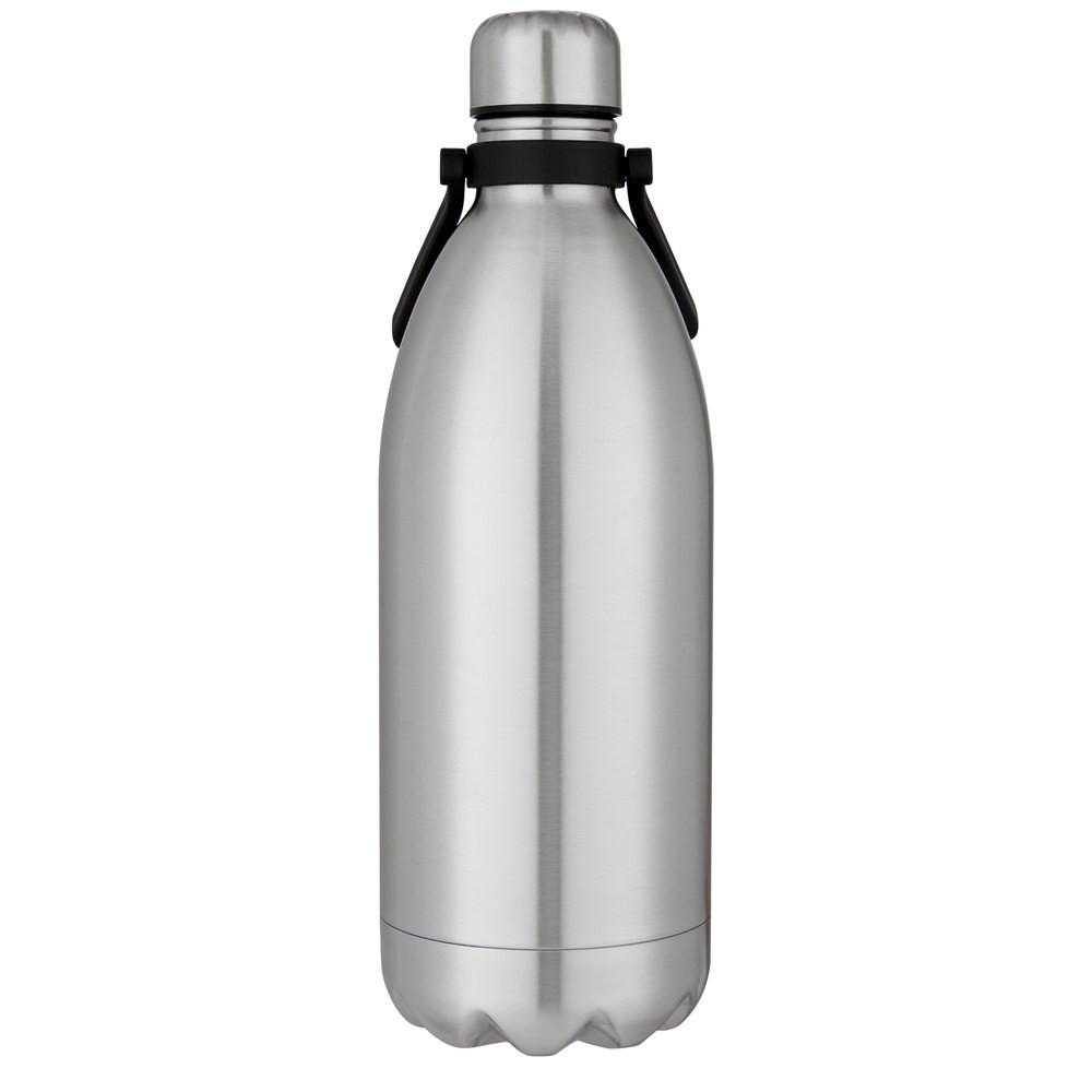 Hyvin suuri, tyhjiöeristetty ruostumattomasta teräksestä valmistettu pullo, joka on edustavasti muotoiltu ja helppo kantaa siihen kuuluvalla kätevällä kahvalla. BPA-vapaa, testattu ja hyväksytty elintarviketurvallisuslainsäädännön (LFGB) mukaisesti. Testattu ja hyväksytty ftalaattipitoisuuden osalta REACH-asetusten mukaisesti. Tilavuus on 1,5 litraa. Suositellaan pestäväksi käsin. Toimitetaan kierrätetystä kartongista valmistetussa lahjapakkauksessa. Pitää juomat kuumina jopa 12 tuntia ja kylminä 24 tuntia.