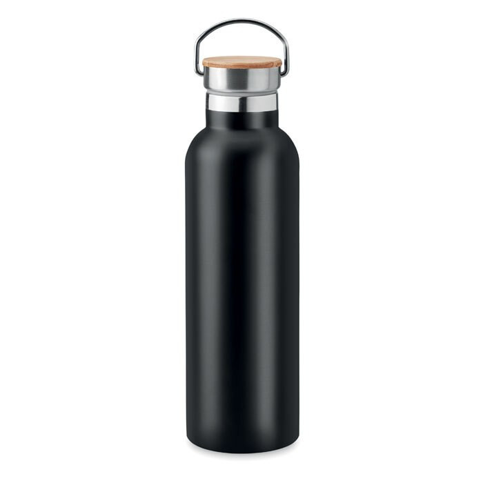 Kaksiseinäinen ruostumattomasta teräksestä valmistettu 750 ml termospullo bambu korkilla.