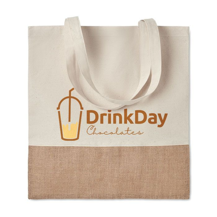 160 g / m² puuvilla twill juuttikassi, pitkillä kahvoilla.