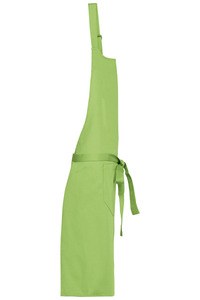 Tämä on yhden koon esiliina, jonka pituus on 90 cm ja leveys 76 cm, ja siinä on säädettävä niskahihna.