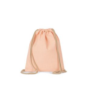 Small drawstring bag made from 75% recycled cotton and 22% recycled polyester (Deep Water, Ecume, Salmon), 75% recycled cotton and 20% recycled polyester (Flint Grey), 78% recycled cotton and 20% recycled polyester (Topaz Blue).