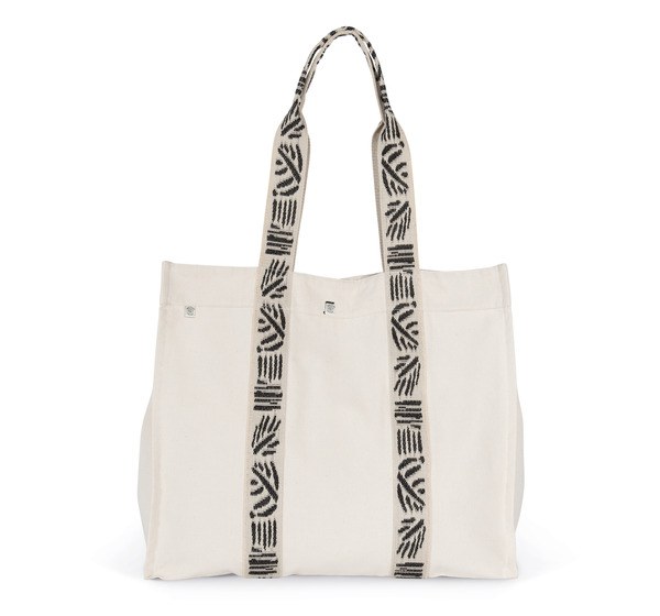 The contrasting coloured handles feature Japanese-inspired graphics and are sewn all the way down the whole bag for a touch of originality and to make it much more durable.