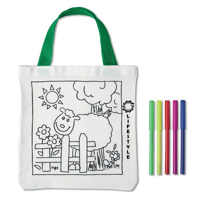 Puuvillakassi 5 värikynällä 200gr / m².