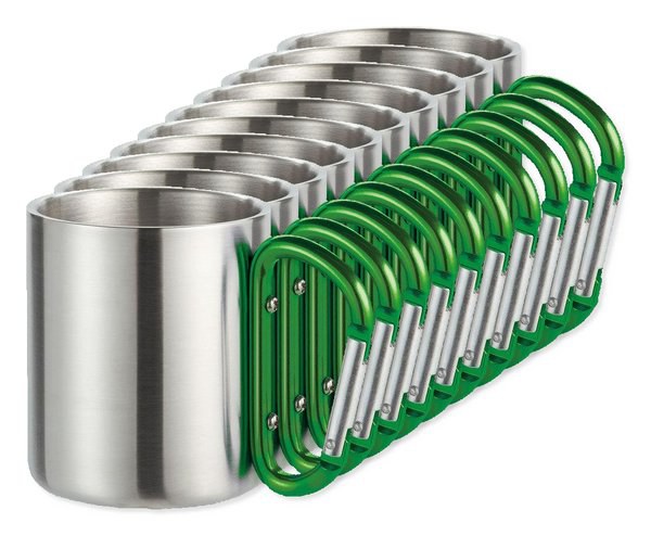 Paketti 10 kpl GiftRetail MO8313 - Vihreä - TRUMBO Seikkailijan Teräsmuki Karabiinikahvalla