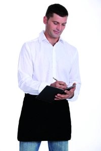 Tämä lyhyt esiliina on kooltaan 90x40 cm, mikä tarjoaa ammattimaisen istuvuuden tarjoilijoille.