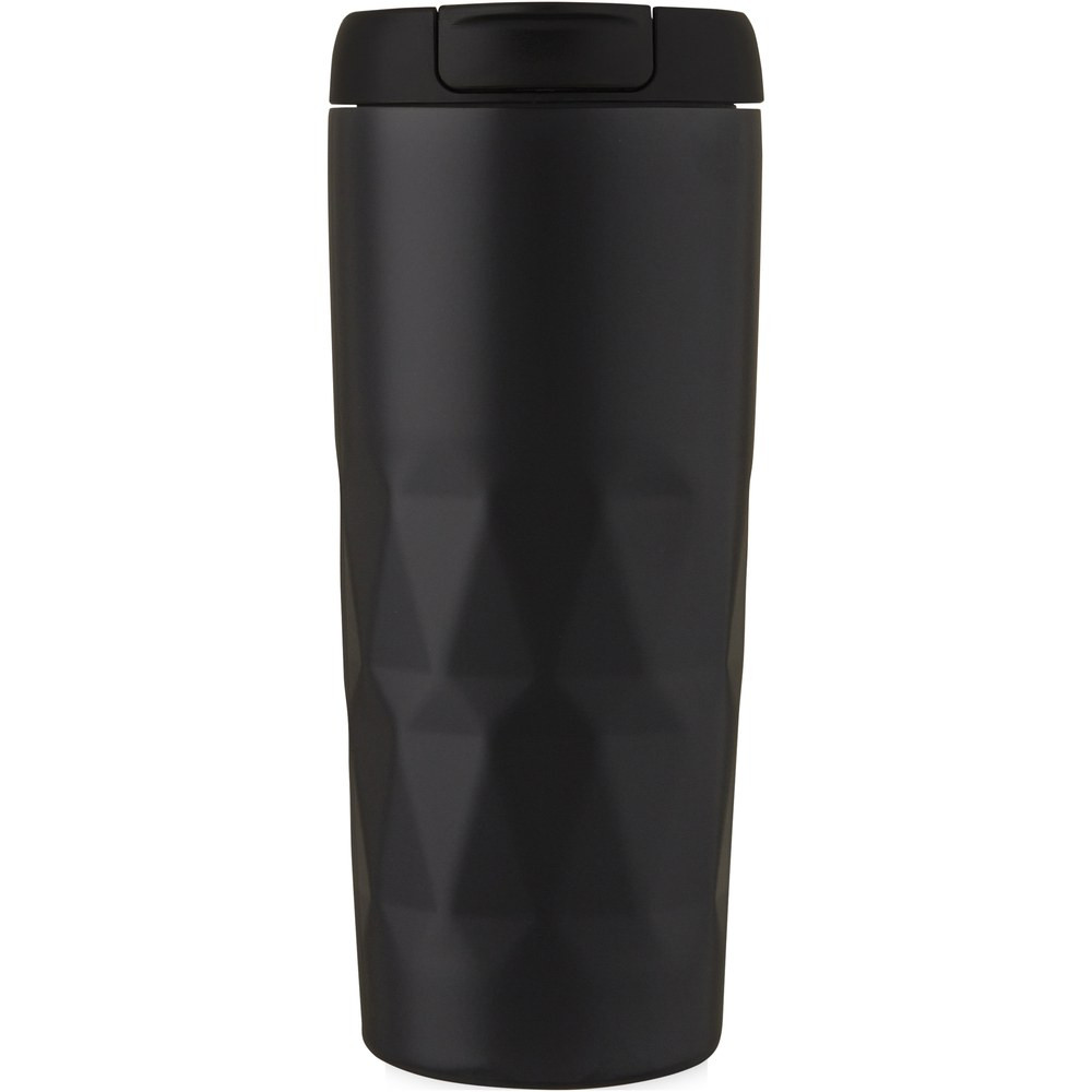 Kaksiseinäinen kuparityhjiöeristetty kahvimuki, jossa on tiivis kierrekansi ja geometrinen kuviointi. Eristetty 18/8 ruostumaton teräs pitää juoman kuumana tai kylmänä useita tunteja. BPA-vapaa, testattu ja hyväksytty Saksan elintarviketurvallisuuslainsäädännön (LFGB) mukaisesti, sekä ftalaattipitoisuus testattu REACH-asetusten mukaisesti. Tilavuus on 450 ml. Suositellaan pestäväksi käsin. Toimitetaan kierrätetystä kartongista valmistetussa lahjapakkauksessa.