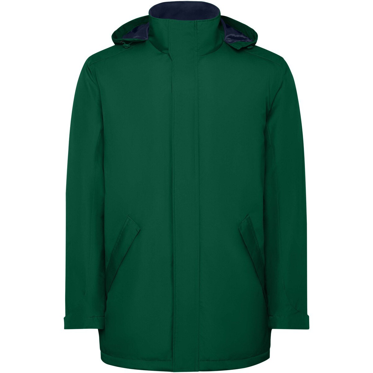 Miesten vedenpitävä topattu parkatakki. Korkea kaulus, jossa taitettu ja irrotettava huppu tarranauhakiinnityksellä. Yhteensopiva keskivetoketju läpällä. Sivutaskut vetoketjulla ja kiinteällä läpällä. Sisätasku tarranauhakiinnityksellä. Säädettävät hihansuut tarranauhalenkillä. Selässä ja vasemmassa rinnassa oleviin vahvikkeisiin pääsee sisäpuolelta.