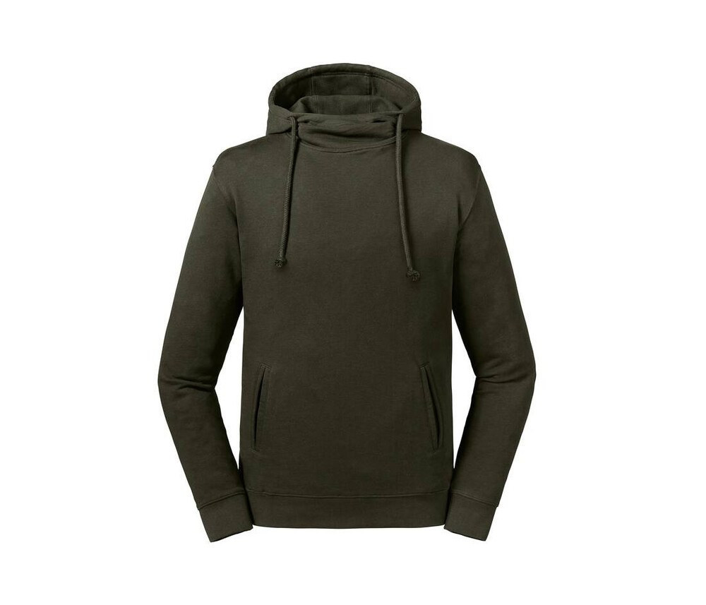Moderni ja istuva leikkaus. Harjaamaton sisäpuoli. Ei tuotemerkkiä, vain kokolappu. Hihansuut ja vyötärö joustinneuletta elastaanilla. Vyötäröllä tikkaukset. Herringbone-nauha kauluksen sisäpuolella. Vuorattu huppu, jossa kontrastiväriset nyörit. Puolikuun muotoinen kaistale sisäpuolella tunnistusta varten. GOTS-sertifioitu.