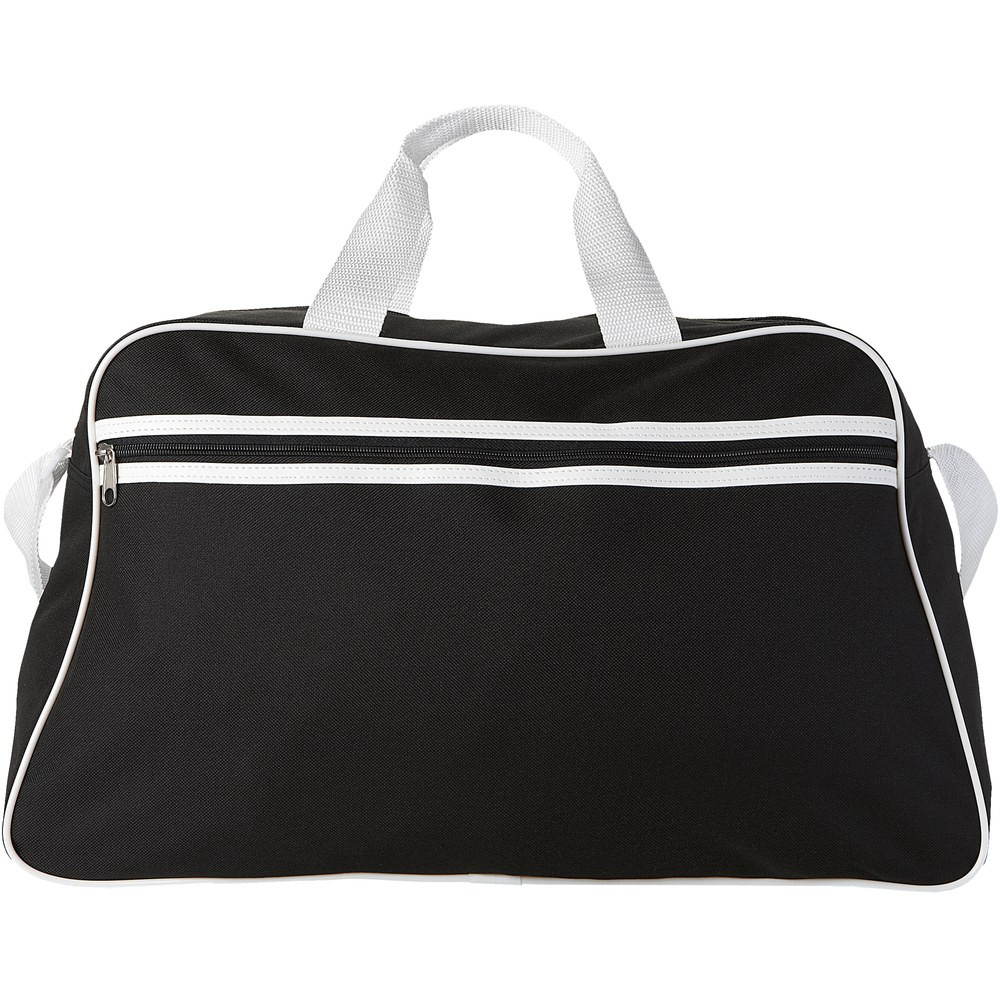Urheilukassi, jossa on vetoketjullinen säilytystasku ja vetoketjullinen etutasku.
