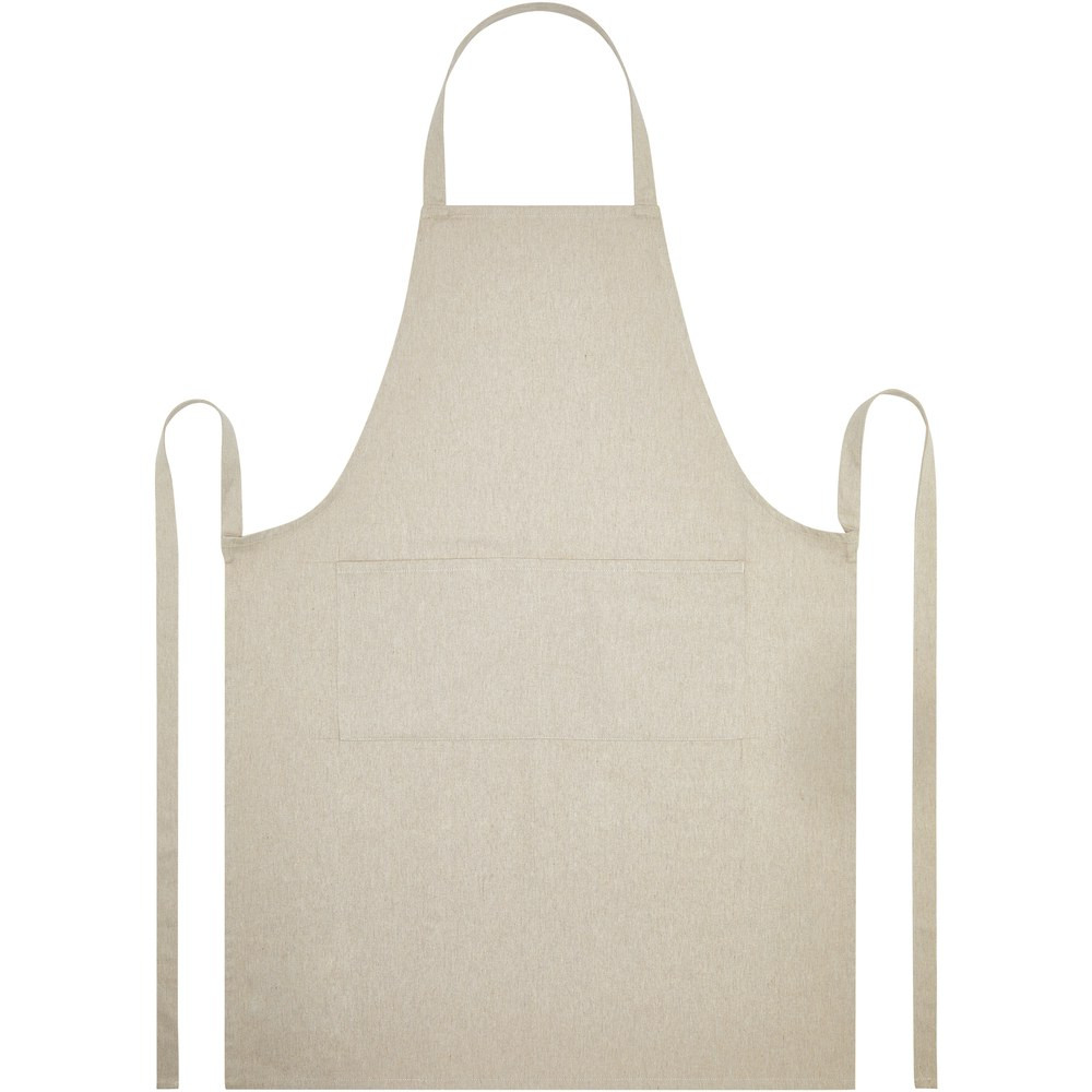 Shara-esiliinan valmistusraaka-aineista 70 % on 240 g/m2 kierrätettyä puuvillaa ja 30 % kierrätettyä polyesteria, joten se on paksu, tukeva ja mukava käyttää. Sisältää kaksi vierekkäistä taskua (kukin 22 x 20 cm) ja yhden metrin pituisen selkäpuolelta kiinnitettävän sidontanauhan. Esiliinan valmistuksessa on käytetty Cyclo®-kierrätyskuituja, joissa käytetään esilajiteltua jätettä, mikä määrittää langan värin. Nämä kuidut vähentävät ensiöraaka-aineiden kysyntää ja ovat myös osoitus sitoutumisesta kiertotalouteen, joka kannustaa jätteen vähentämiseen ja tukee suljettuun kiertoon pohjautuvaa järjestelmää. Jokaisen esiliinan mukana tulee myös Aware™-jäljitin. Tämän innovatiivisen ominaisuuden avulla käyttäjät voivat jäljittää tuotteensa alkuperän ja matkan QR-koodin avulla, mikä lisää läpinäkyvyyttä toimitusketjussa ja edistää vahvempaa yhteyttä tuotteen ja sen tuotantoprosessin välillä.