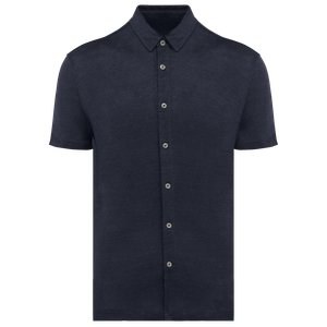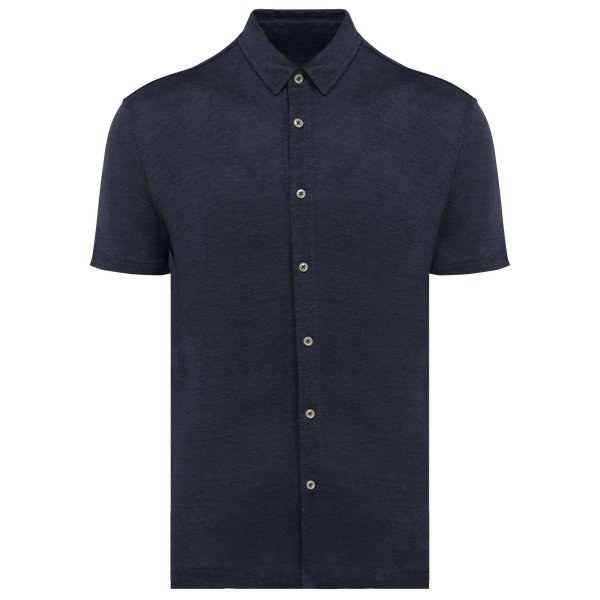 Spasso SP517 - Laivastonsininen - Men's Linen Short-sleeved Shirt
