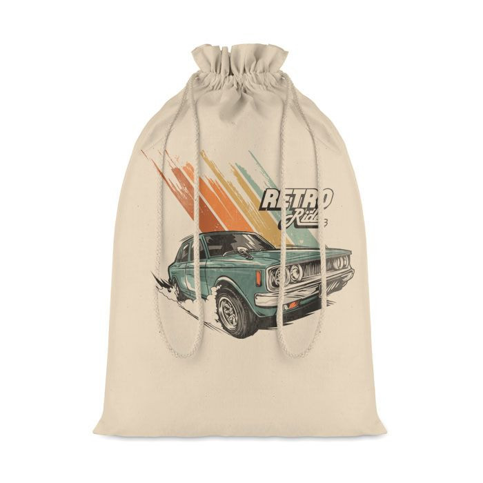 105 g/m² iso puuvilla lahjapussi narukiristyksellä, 30 x 47 cm.