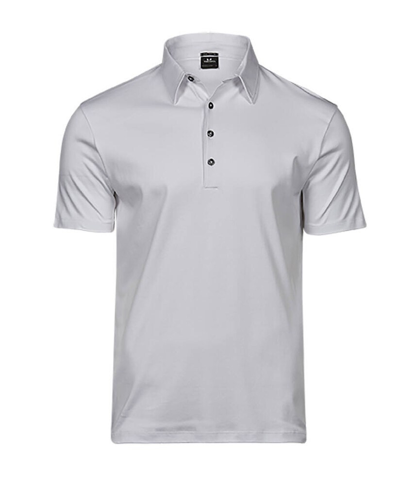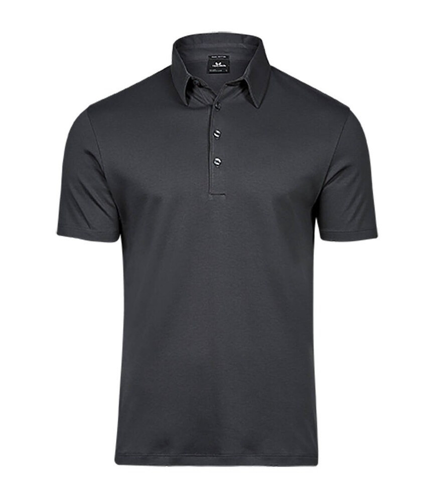 Tyylikäs, huippuluokan interlock-pikeepaita 100% Pima-puuvillasta, jossa on kapeasti istuva vartalo. Siinä on itsestään kangaskaulus, joka on viimeistelty tyylikkäällä nappilistalla, jossa on antrasiitin väriset helmiä jäljittelevät napit.