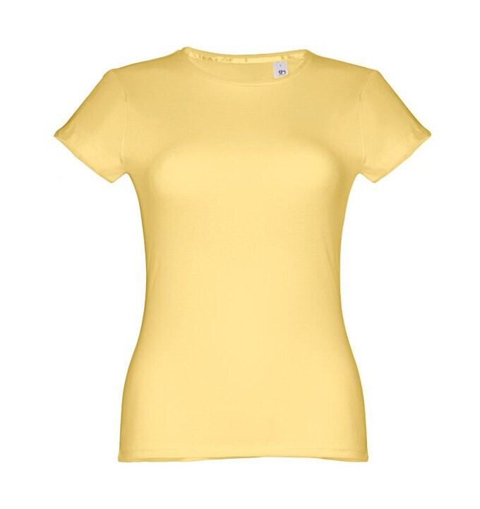 Naisten tyköistuva t-paita 100% puuvillatrikoota (150 g/m²) ja harjattua puuvillalankaa (väri 183: 90% puuvillaa/ 10% viskoosia, väri 196: 98% puuvillaa/ 2% viskoosia). Kapea trikookaulus, satiinikanttaus sisäpuolella. Muotoon leikattu ja ommeltu, kaksoisommel hihoissa ja helmassa