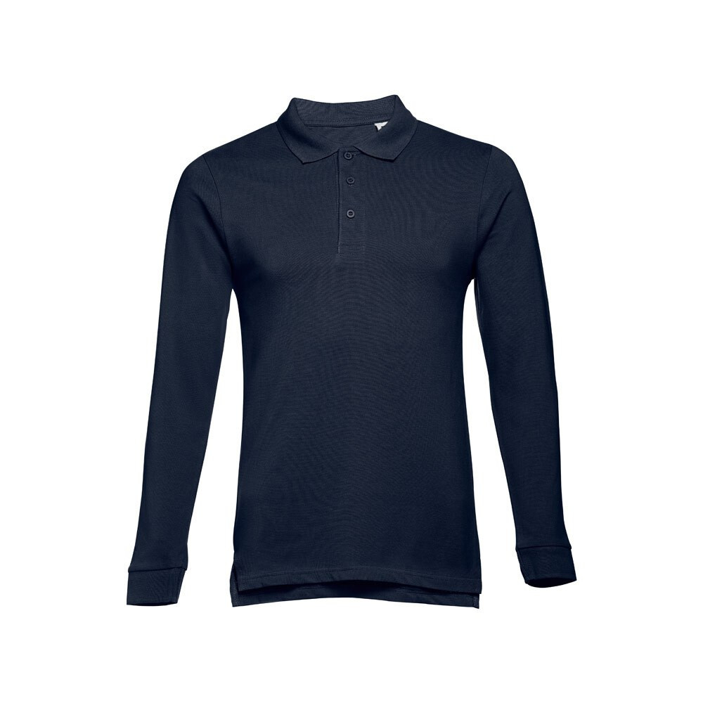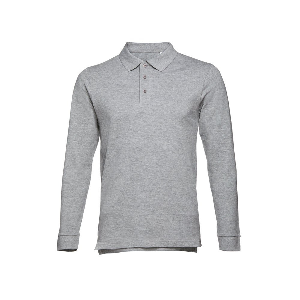 Miesten pitkähihainen pikeepaita 100% harjattua puuvillaa (210 g/m²) (väri 183: 85% puuvillaa/15% viskoosia). Normaali leikkaus, resorikaulus ja -hihansuut. Vahvistettu kaulus ja nappilista, 3 värillistä nappia. Sisäsaumassa varanappi. Muotoon leikattu ja ommeltu, helmassa sivuhalkiot. Näkyvä, poistettava lappu
