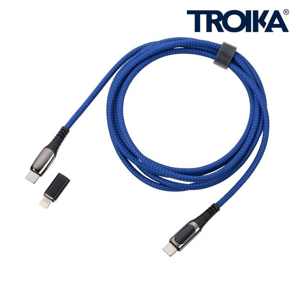 Charging cable high-speed USB-C 100W PD Power Delivery to USB-C, with data transfer function, full charging capacity: max. 100W|20V|5A (without adapter), depending on the device to be charged, with digital display of the charging power, incl. USB-C to Lightning adapter, cable textile-coated (mesh structure), recycled polyester, 2m length, metal, polyester, black/gunmetal