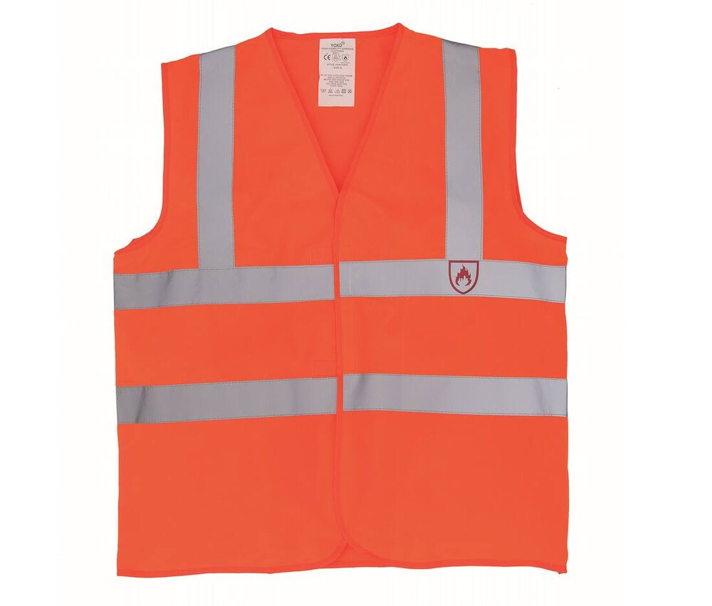 Retard-turvatakki, jossa on 2 pystysuoraa ja 2 vaakasuoraa heijastavaa raitaa, ommeltu 5 senttimetrin leveydelle. Sulkeminen tapahtuu Velcro®-tarranauhalla. Tämä malli on hyväksytty EN ISO20471:2013 Class 2 -määrityksen mukaisesti ja se täyttää myös EN533 - Index 1 -määrityksen, joka takaa suojan lämpöä ja liekkejä vastaan. Pieni liekkilogo liivin etuosassa. Tämä liivi voidaan pukea useiden kerrosten päälle, samalla kun se sallii hyvän liikkuvuuden.